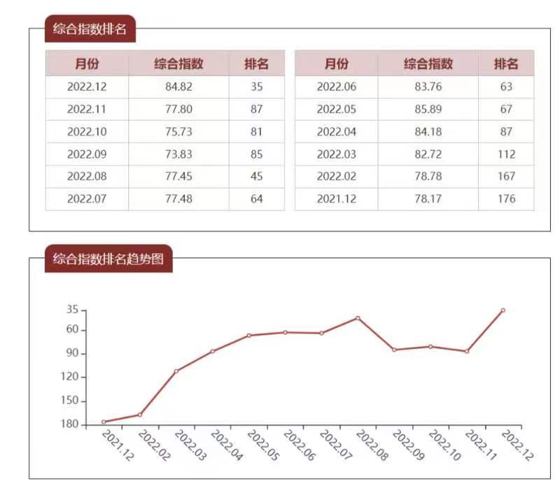 根据国家公共信用信息中心最新一期《城市信用监测月报》公布的2022年12月城市信用状况排名情况看,信阳市居全国261个地级市第35位,继8月排名(第45位)再次进入全国前50名。自2022年3月排名大幅提升(55个名次)、4月进入全国前百名以来,信阳市已连续9个月保持全国上游水平、全省前列位次,在近12个月地级城市平均综合信用指数排名中,位居全国第81位、河南省第3位,是我市持续提升城市信用水平、优化营商环境的重要体现。