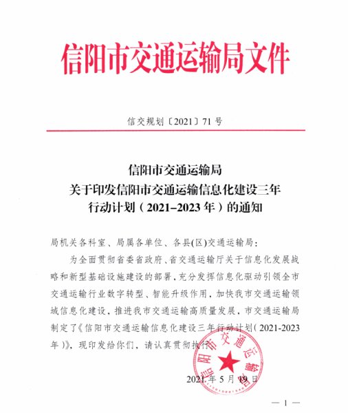 关于印发信阳市交通运输局信息化建设三年行动计划(2021-2023年)的通知