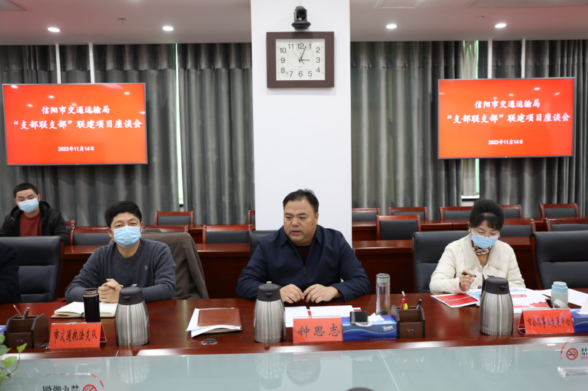 为深入贯彻落实市委“支部联支部”活动要求,办好惠民实事,进一步推动“支部联支部”活动走深走实,11月14日下午,市交通运输局召开“支部联支部”联建项目座谈会。受局党组书记、局长王献富委托,局党组副书记、副局长钟思志主持会议并讲话。市民政局、市妇联、市残联,市家政商会、市联通公司相关专家领导应邀到会指导,联建的苏庙社区、安恒社区、中山社区、六里棚社区党支部书记,局办公室、机关党委、创建办及局属各单位分管领导参加座谈。