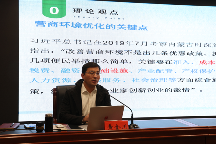 会议邀请中科院地理所城市室副主任,河南省营商环境评价组组长黄金川授课。黄教授就如何优化交通运输营商环境,分别从政策引介、指标解读、企业反映的问题、创新经验、重点建议等五个方面进行了深入解析,指出了我们存在的差距和不足,介绍了全国其他地市的先进经验做法,并从“出行即服务”的角度出发,对优化我市交通运输营商环境,提高综合立体交通指数指标水平提出了有前瞻性、可操作的意见建议。