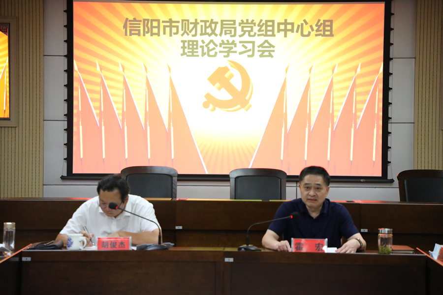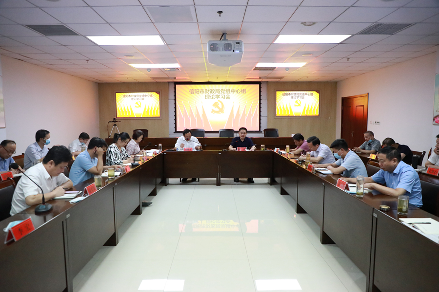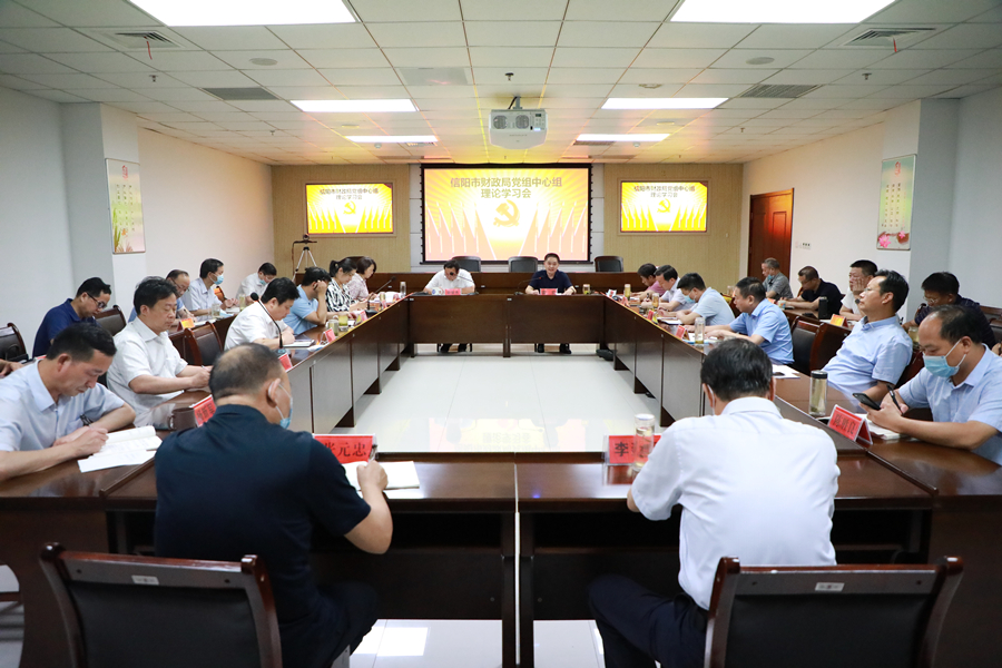 6月28日,信阳市财政局召开党组中心组理论学习会议,传达学习习近平总书记考察宁夏时的重要讲话、省委省政府加快大别山老区振兴发展会议精神以及市委五届十一次全体会议精神。