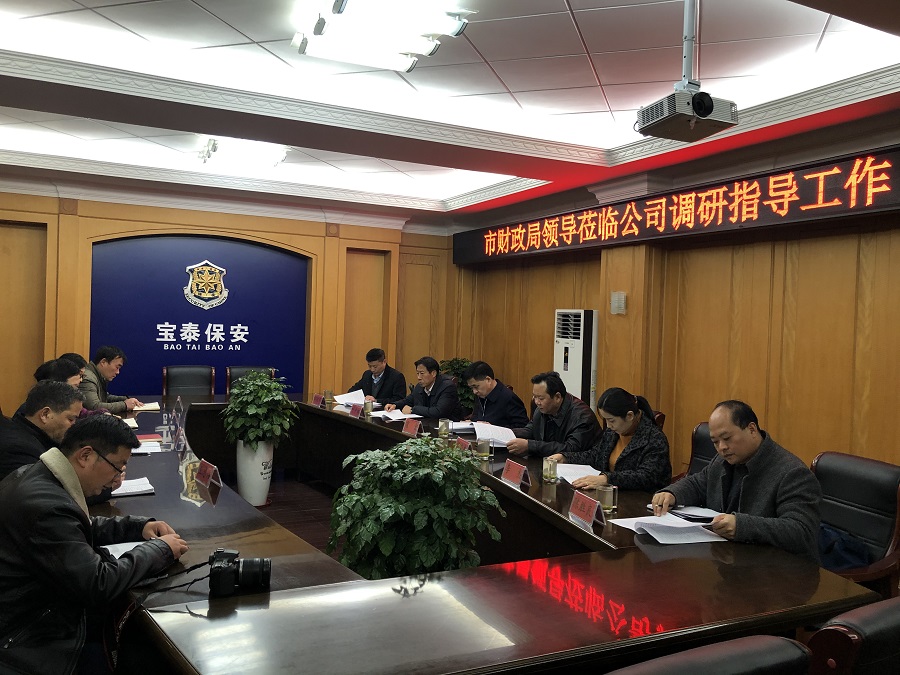12月4日,市财政局党组书记、局长霍宏、党组副书记胡俊杰一行6人赴信阳宝泰保安服务有限公司调研指导工作。