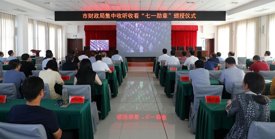 6月29日,市财政局全体干部职工在局五楼大会议室集中收听收看庆祝中国共产党成立100周年“七一勋章”颁授仪式。