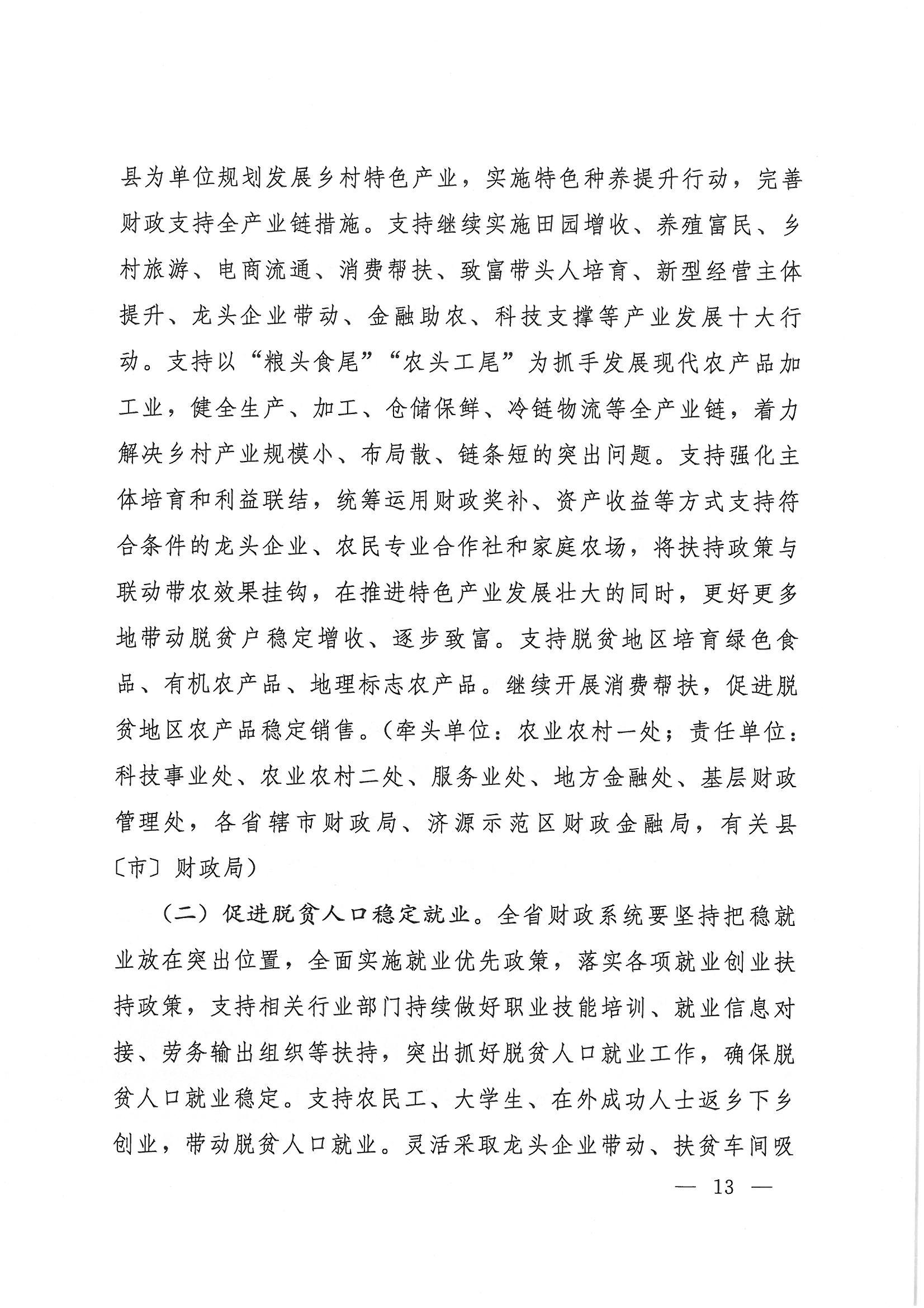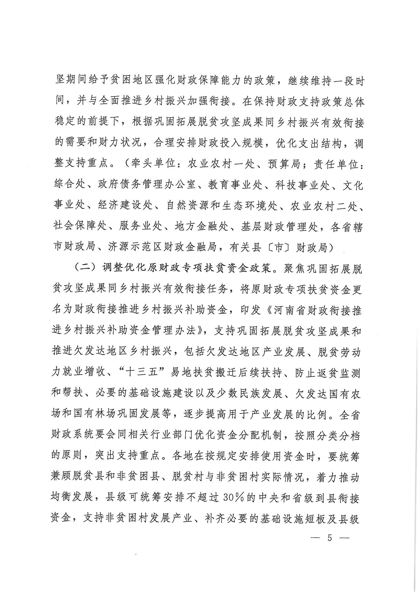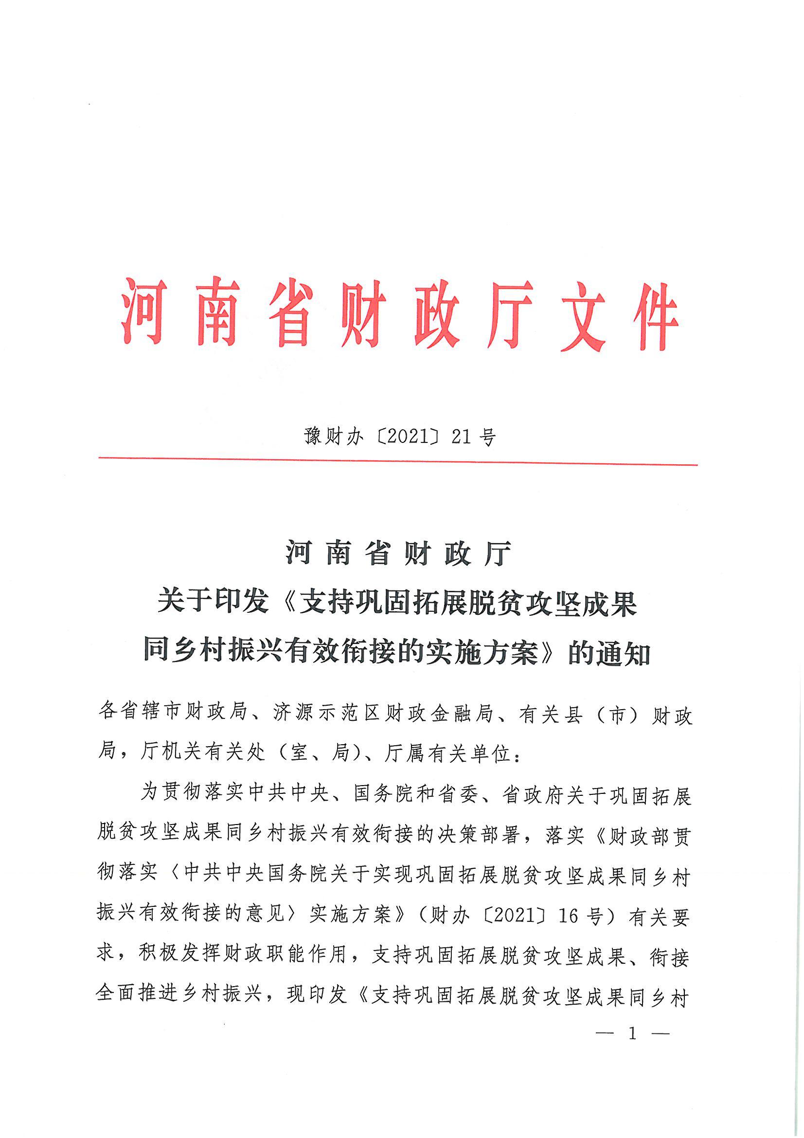 河南省财政厅关于印发《支持巩固拓展脱贫攻坚成果同乡村振兴有效衔接的实施方案》的通知