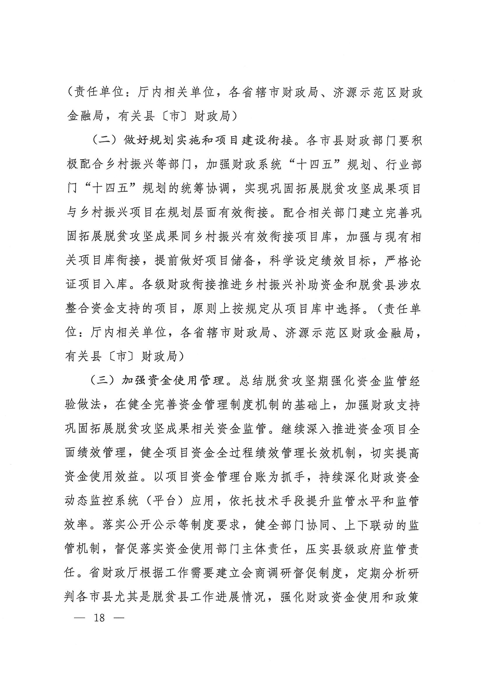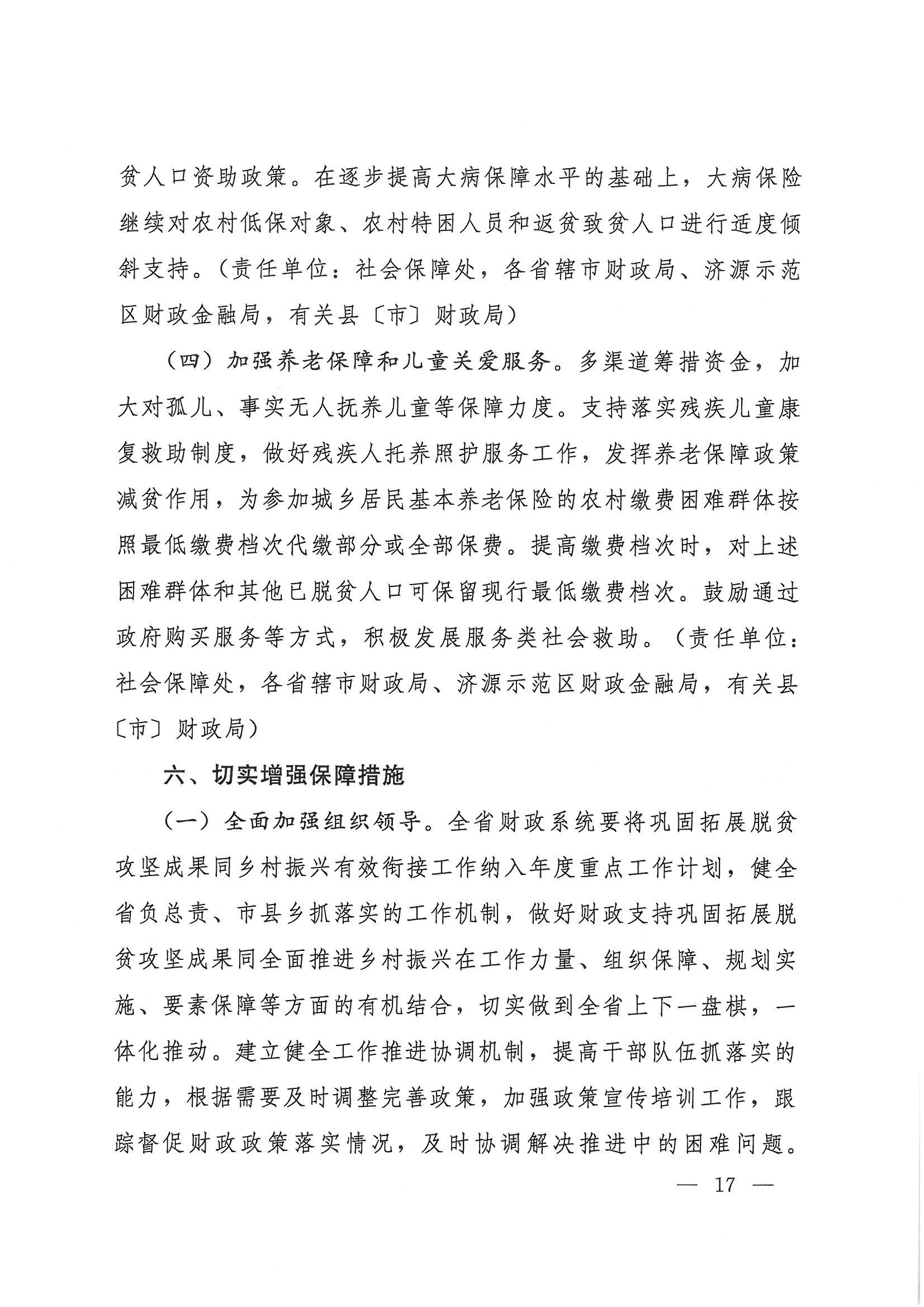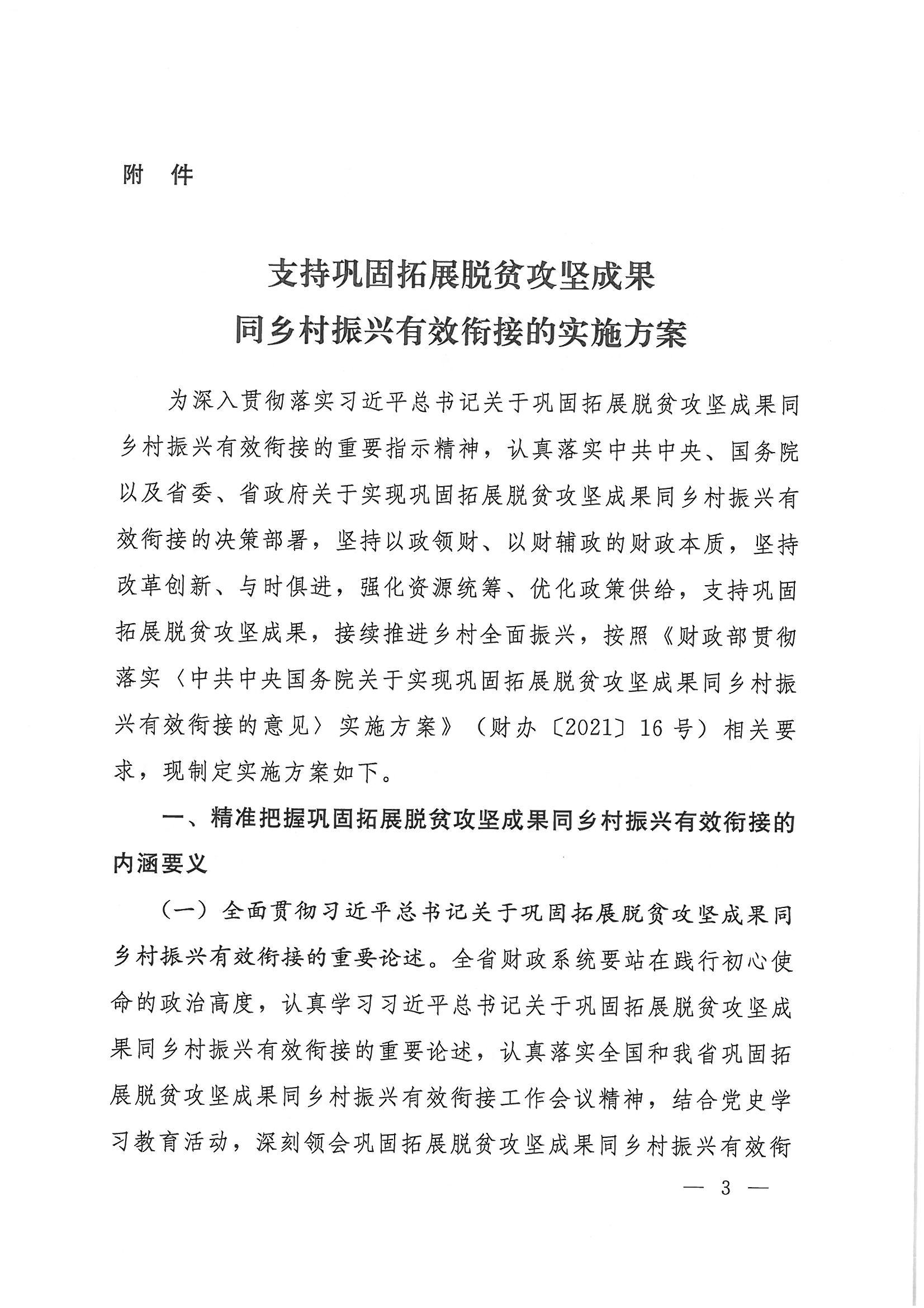 河南省财政厅关于印发《支持巩固拓展脱贫攻坚成果同乡村振兴有效衔接的实施方案》的通知
