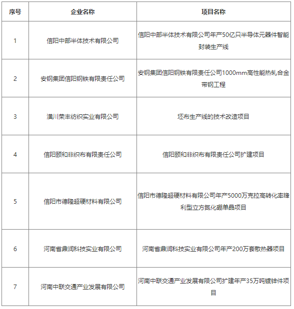 附件:信阳市拟推荐申报2022年制造业高质量发展专项资金头雁企业技术改造项目