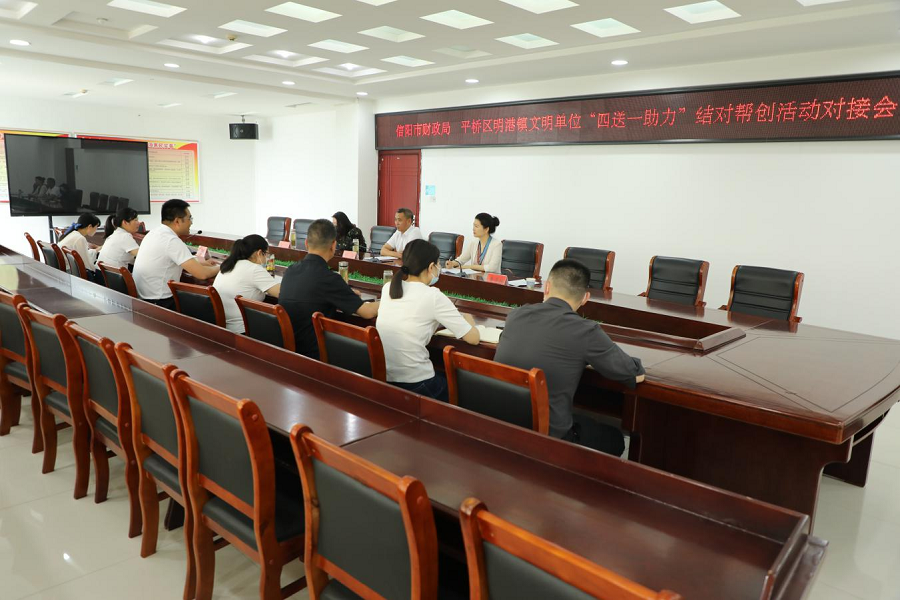 为进一步深化乡镇精神文明建设,促进城乡精神文明融合发展,更好助力全面推进乡村振兴,根据信阳市文明委《关于在全市开展文明单位“四送一助力”结对帮创活动的方案》要求,5月24日,信阳市财政局党组成员、副局长邹俊及局创建办等相关科室人员到结对帮创单位平桥区明港镇开展文明单位“四送一助力”结对帮创活动。