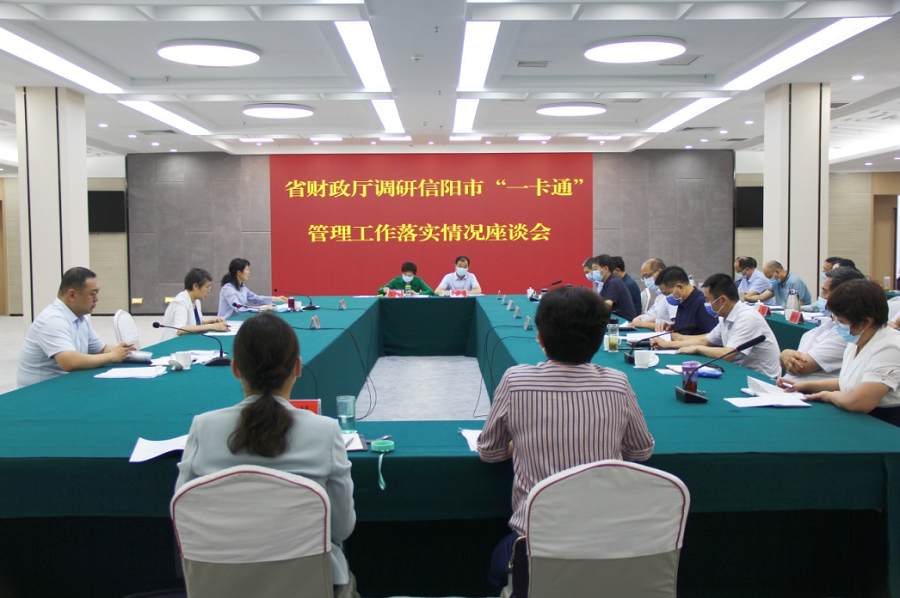 21日上午,李铭在市政府6号楼主持召开省财政厅调研信阳市“一卡通”管理工作落实情况座谈会。市委常委、常务副市长黄钫出席会议并讲话。会上,省财政厅监督局局长沈燕通报信阳市“一卡通”管理工作推进情况,市“一卡通”局际联席会议召集人,市财政局党组书记、局长霍宏汇报了全市“一卡通”管理工作推进情况,固始县、商城县、市人社局、民政局、农业农村局以及农业银行信阳支行、信阳市农信办的负责同志进行了经验交流。
