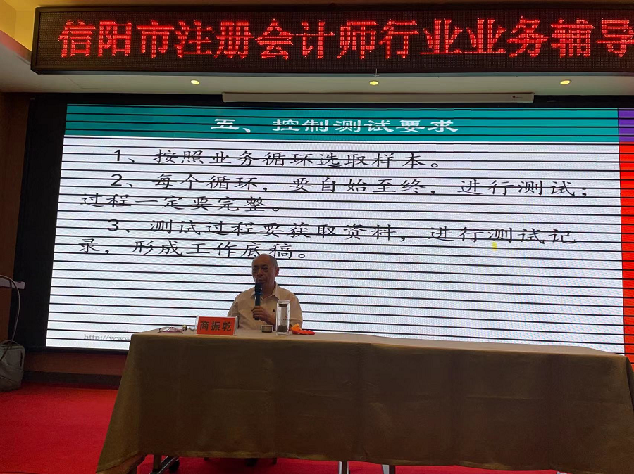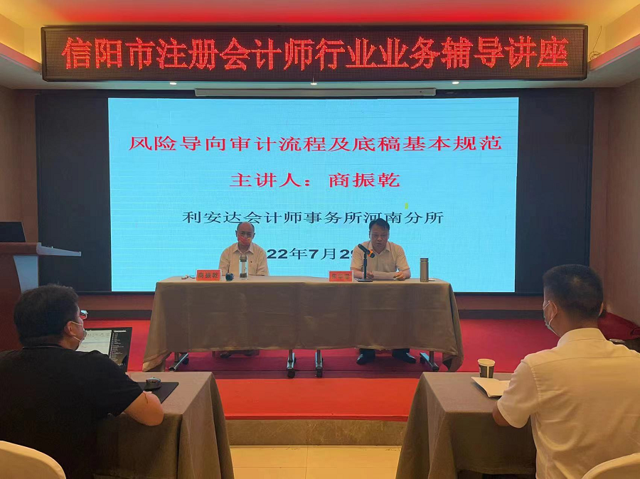 7月29日上午,市注协邀请正在信阳进行会计师事务所执业质量检查工作的检查组组长、利安达会计师事务所(特殊普通合伙)河南分所副所长商振乾给信阳行业从业人员做业务辅导讲座,讲座由市注协秘书长朱华堂主持,各会计师事务所负责人及从业人员共60余人聆听了讲座。