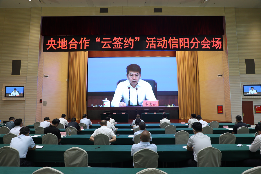 为搭建新形势下全省与中央企业交流平台,促进一批高质量合作项目达成签约、落地实施,省政府于8月17日在郑州举办全省央地合作“云签约”活动。省主会场由省政府副秘书长魏晓伟主持,省政府国资委党委书记、主任李涛通报央地合作情况,介绍拟签约合作项目,省委常委、副省长费东斌出席并发表重要讲话。信阳市设分会场,市委常委、常务副市长黄钫出席活动,市财政局党组书记、局长霍宏,市直有关部门、部分中央企业和市管国有企业负责同志参加活动。