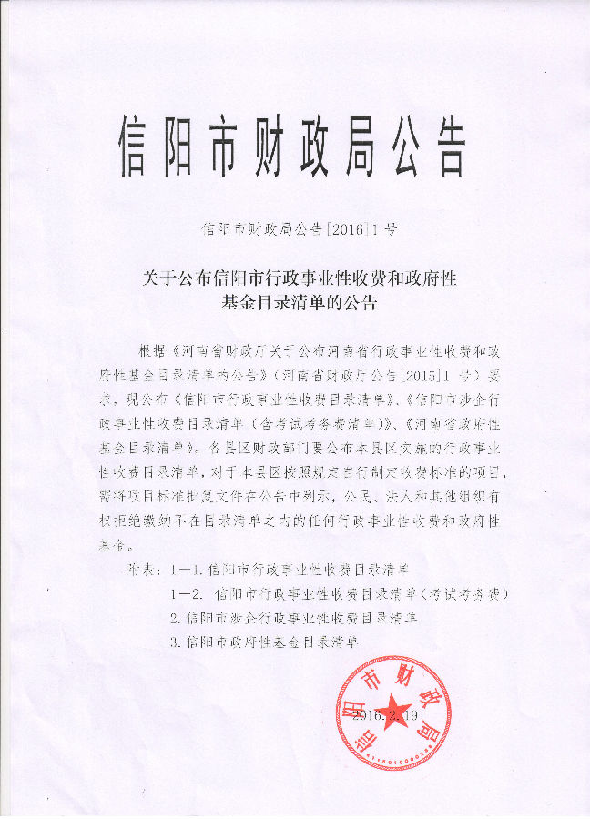 附件一:表1-1 信阳市行政事业性收费目录清单.xlsx