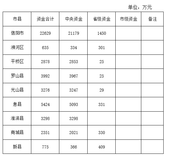 按照《河南省开展统筹整合使用财政涉农资金试点实施办法》(豫办﹝2016﹞28号)要求,市级有关部门在向贫困县分配纳入整合范围的中央和省市涉农资金时,按照“确保用于贫困县的资金占比高于以前年度补助贫困县的资金比例”要求,分配到贫困县的资金为19116万元,占比为84.48%。