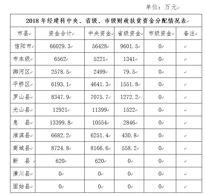 信阳市2018年财政专项扶贫资金分配情况公告公示