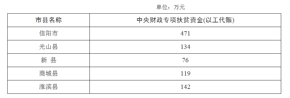 为贯彻落实习近平总书记关于扶贫工作的重要论述和党中央、国务院、省委、省政府及市委、市政府关于打赢脱贫攻坚战的决策部署,根据《河南省财政厅 关于下达2020年中央财政专项扶贫资金(以工代赈)的通知》(豫财农综〔2020〕12号)要求,现下达我市2020年中央财政专项扶贫资金(以工代赈)471万元(数额详见附件),并将有关要求通知如下:
