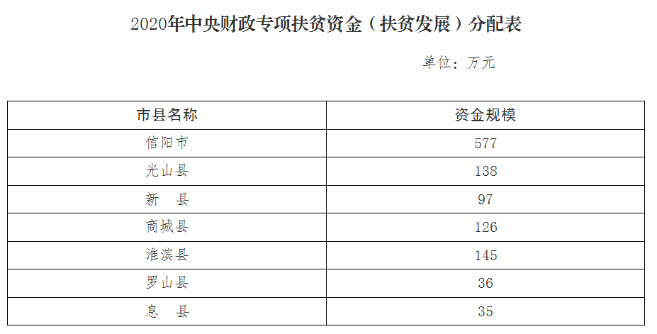 为贯彻落实习近平总书记关于扶贫工作的重要论述和党中央国务院、省委省政府及市委市政府关于打赢脱贫攻坚战的决策部署,根据《河南省财政厅 河南省扶贫开发办公室 关于下达2020年中央财政专项扶贫(扶贫发展)资金的通知》(豫财农综〔2020〕18号)要求,现下达我市2020年中央专项扶贫发展资金577万元(数额详见附件),并将有关要求通知如下: